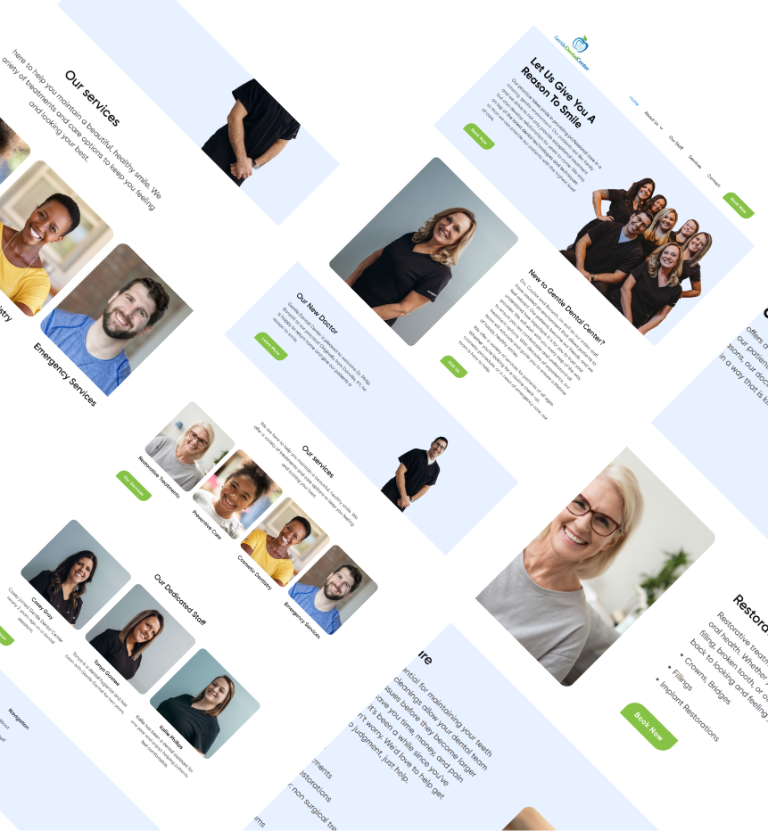 With no branding or clear-cut direction, Gentle dental was looking forward to getting its services up online for the first time. with just the logo and staff photos, I was required to come up with an aesthetically pleasing design that attracted their target audience with a focus on inviting families *parents* to schedule more consultations.